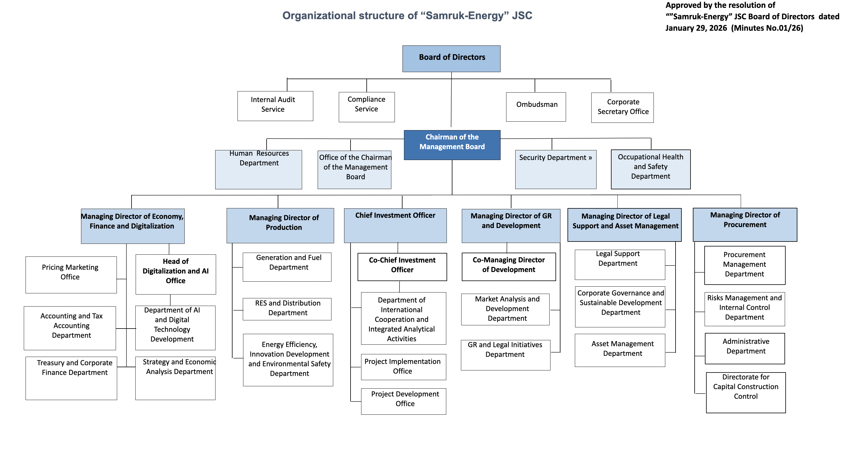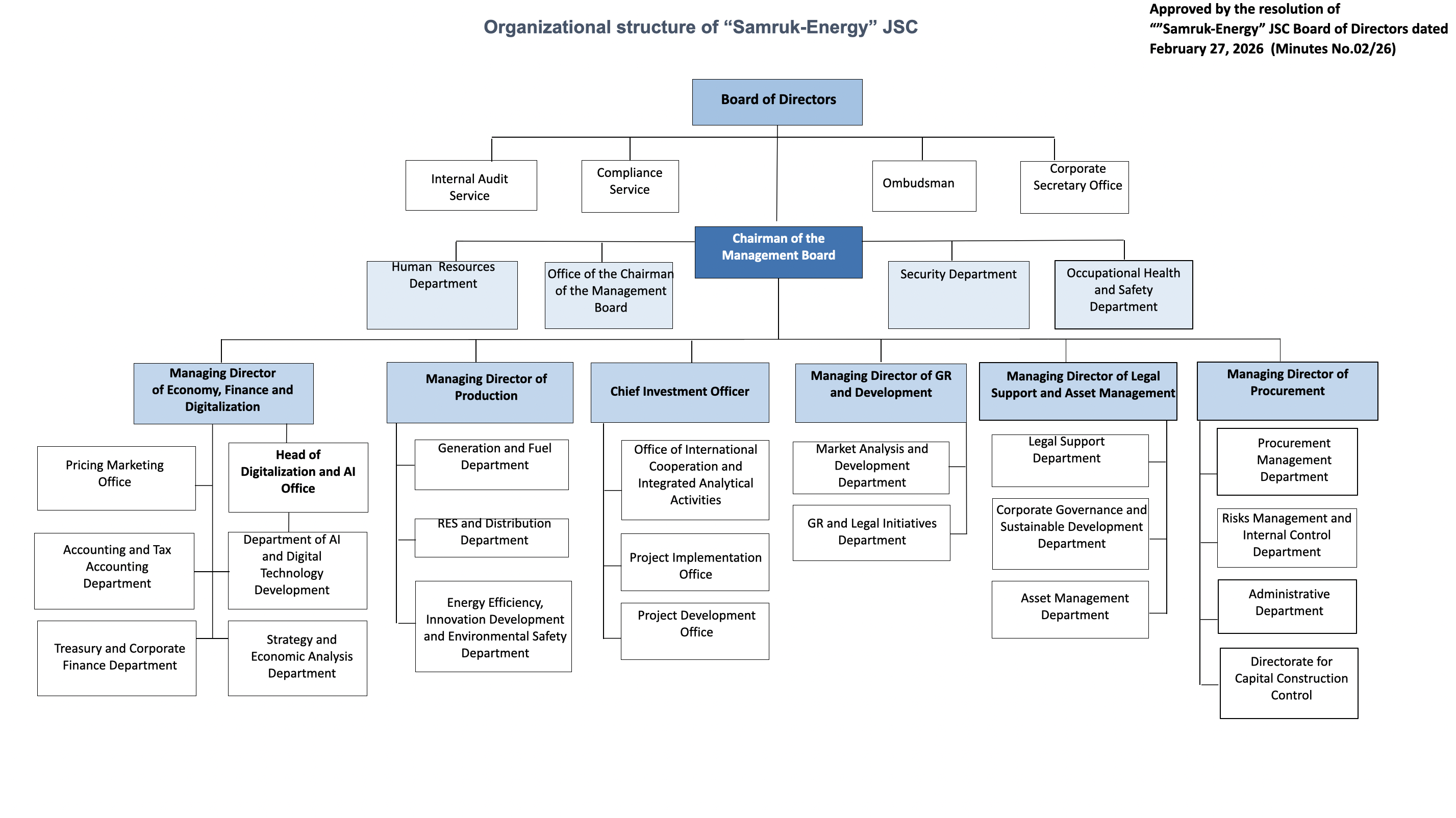 Organization Chart of “Samruk-Energy” JSC