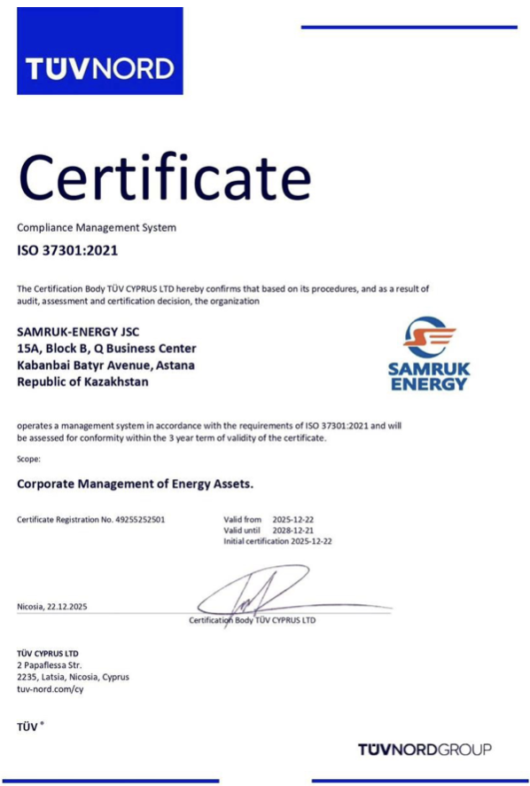 «Самұрық-Энерго» АҚ – Қазақстан экономикасының барлық салаларының орнықты дамуын қамтамасыз ететін энергиямен жабдықтаудың тиімділігі жоғары жүйесін қалыптастыруға бағытталған ірі көпсалалы электр энергетикалық холдинг. Оның қызметінің негізгі бағыттары: электр және жылу энергиясын өндіру; электр энергиясын жеткізу, бөлу және өткізу; энергетикалық көмір өндіру. Компания өндіруші қуаттарды жаңғырту, қайта құру және салу арқылы елдің энергетикалық қауіпсіздігін қамтамасыз ете отырып, электр энергетикасы саласындағы үйлестірілген мемлекеттік саясатты іске асырады.